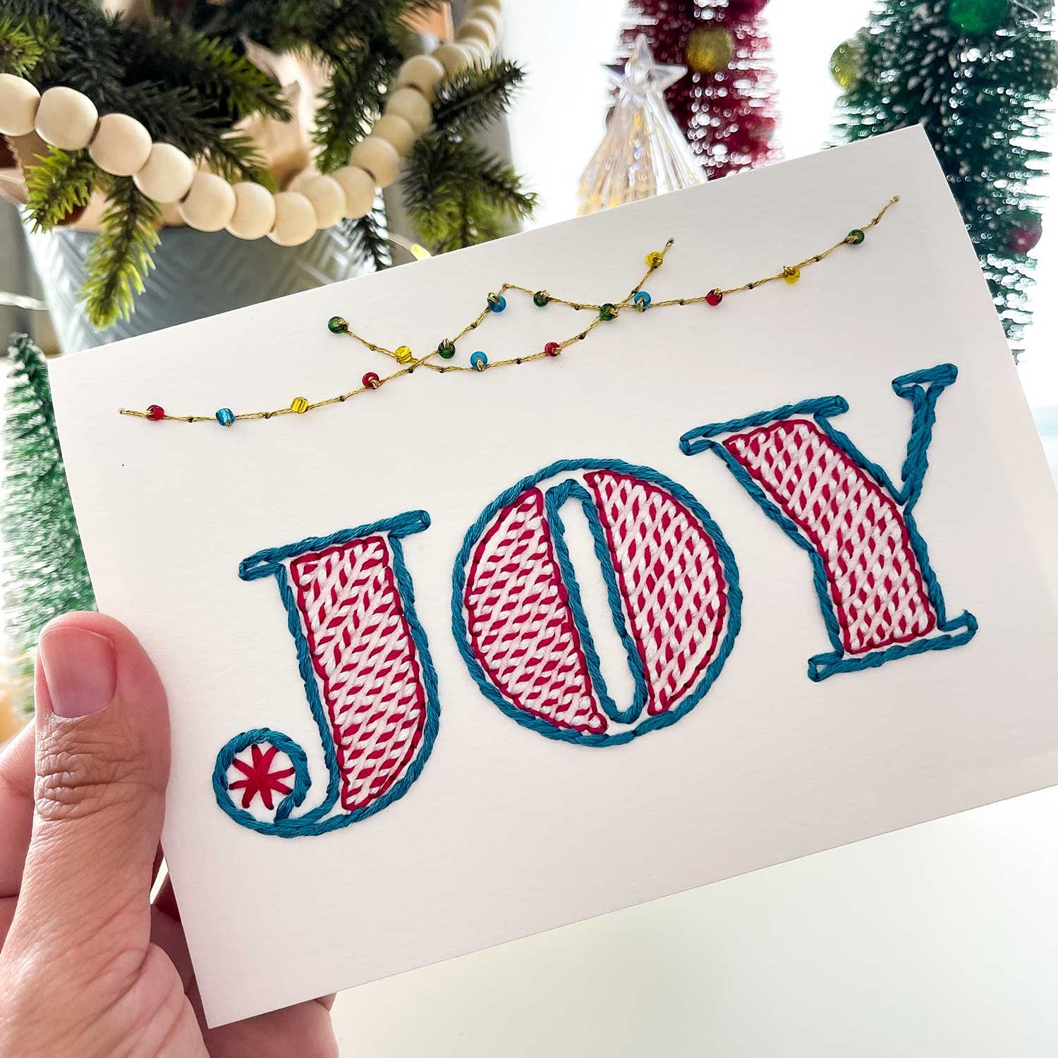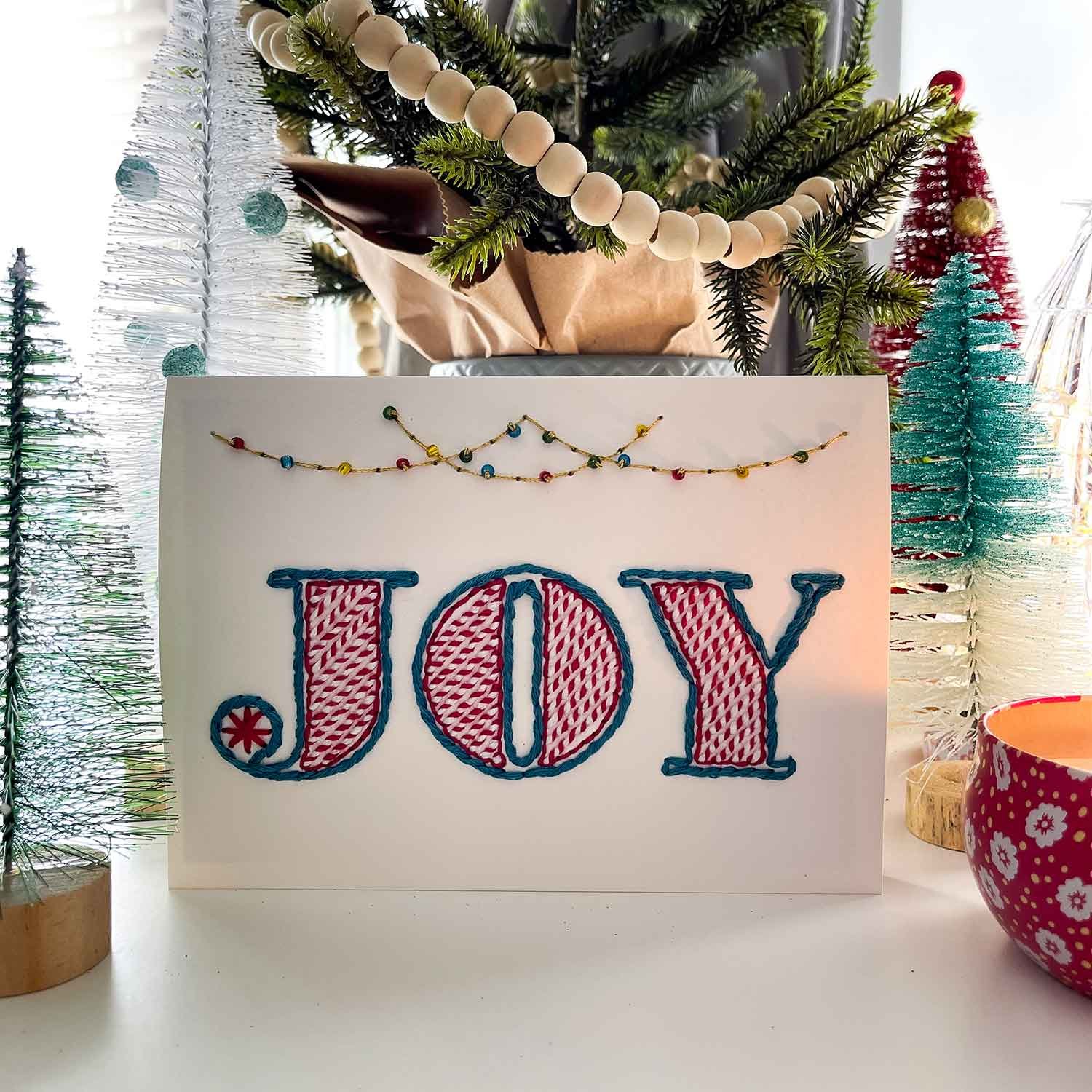 Embroider a beautiful and festive Joy card with this easy-to-follow paper embroidery pattern. This Joy pattern design is perfect for the holiday season. but it’s not limited to Christmas. Whether you want to create a heartfelt card for a loved one or a beautiful piece of holiday decor for your home. this pattern is a fun and rewarding project.